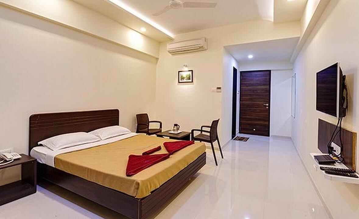 A beautifully designed room that blends traditional charm with modern comfort. Ideal for guests seeking peace and privacy during their wellness stay. Features: Queen-size bed, air conditioning, herbal welcome drink, attached bathroom with hot water